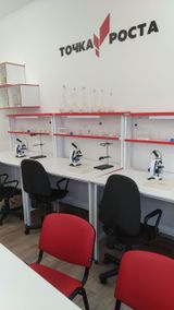 Центр образования "Точка роста" естественно - научной направленности расположен на первом этаже, общей площадью 70.8 м.кв. Кабинет доступен для всех категорий учащихся. В кабинет было получено новейшее современное оборудование.